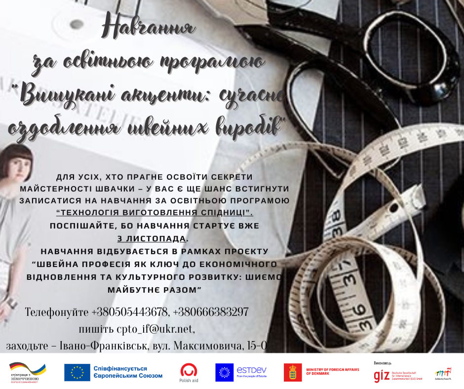 3 листопада стартує навчання за освітньою програмою “Вишукані акценти: сучасне оздоблення швейних виробів” by ІФ ЦПТО ДСЗ